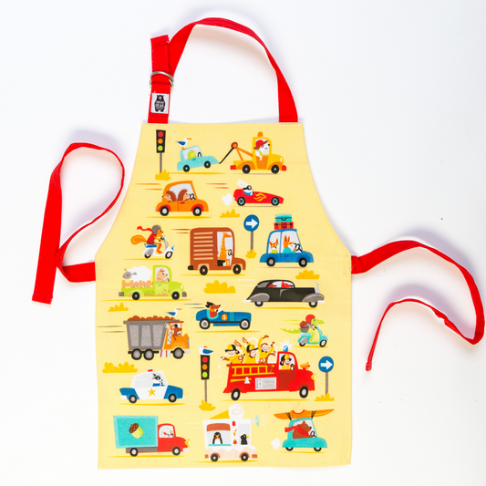 Children’s Apron ‘On The Move’ | Super Durable Panama Cotton | Perfect For Cooking & Crafting