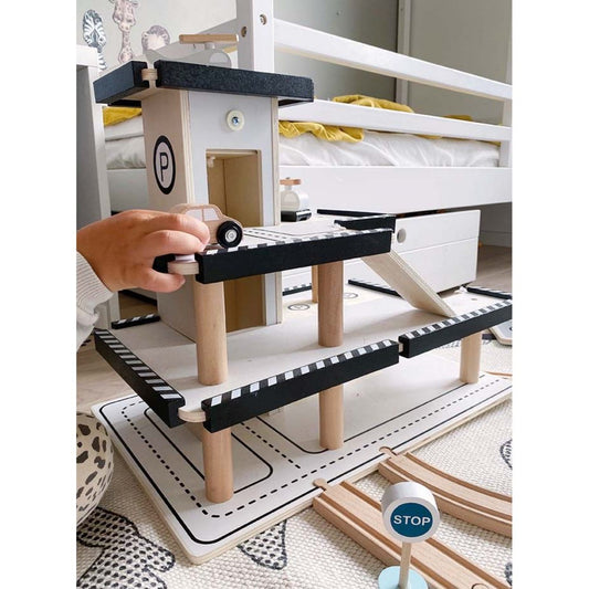 Large Parking Garage with 3 Cars & 1 Helicopter | Wooden Imaginative Play Toys