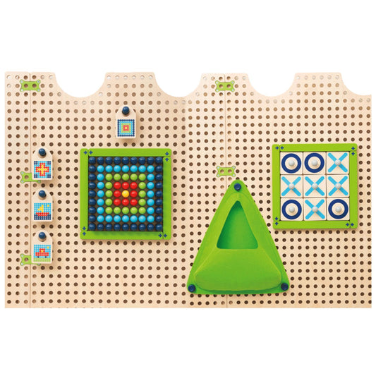 beleduc PLUG-it Wall System Set - Professional wall-mounted learning stations featuring interactive games like Ludo and memory challenges that promote cognitive development and social play.