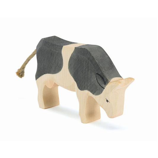 Black & White Cow, Eating | Farm Animal Figure | Wooden Toys for Kids