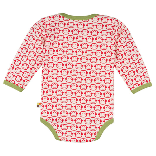Monkey | Tomato Red | Long Sleeve Baby Bodysuit | GOTS Organic Cotton