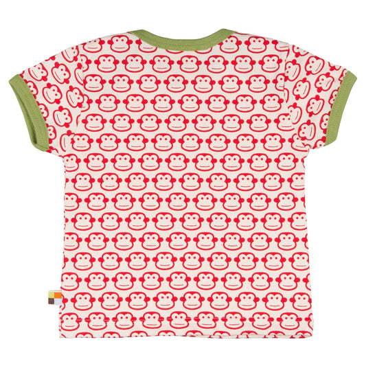 Monkey | Tomato Red | Short Sleeve Baby Top | GOTS Organic Cotton