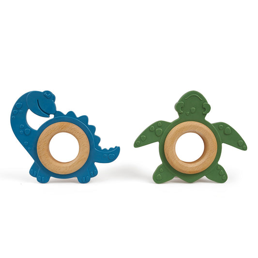 Dinosaur | Organic Rubber and Beech Wood Baby Teether | Teething Toy