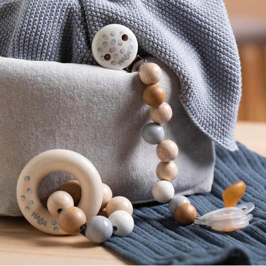 Limited Time Deal PROMOLittle Dots Dummy Clip + Clutching Toy | Baby Gift Set | Baby’s First Wooden Toys