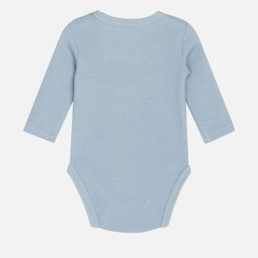 Teddy Bear | Dusty Blue | Long Sleeve Baby Bodysuit | GOTS Organic Cotton