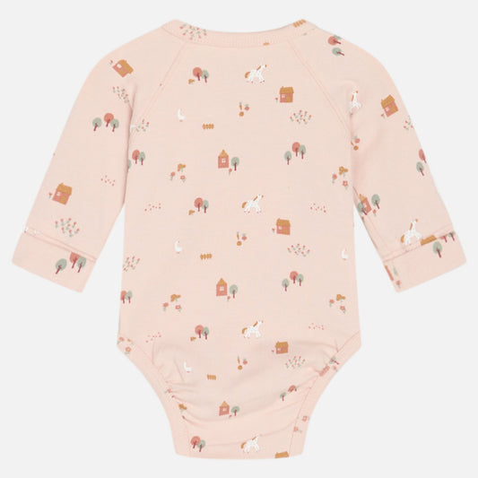 Little Farm | Peach Dust | Long Sleeve Kimono Baby Bodysuit | GOTS Organic Cotton