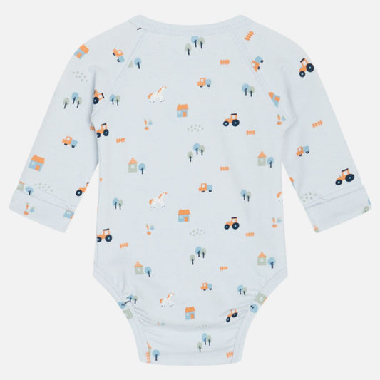 Little Farm | Bit of Blue | Long Sleeve Kimono Baby Bodysuit | GOTS Organic Cotton