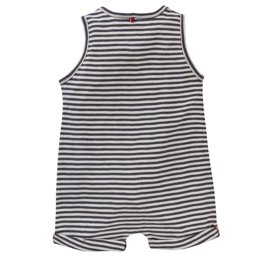 Slate-Grey Striped Sleeveless Baby & Toddler Shortie Romper | GOTS Organic Cotton