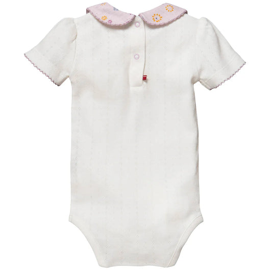 Summer Breeze with Lilac Collar | Ajour Cotton Knit Short Sleeve Baby Bodysuit | GOTS Organic Cotton