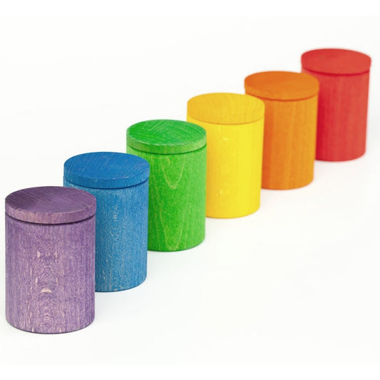 6 Coloured Cups With Lids | Wooden Toys for Kids | Open-Ended Play Set