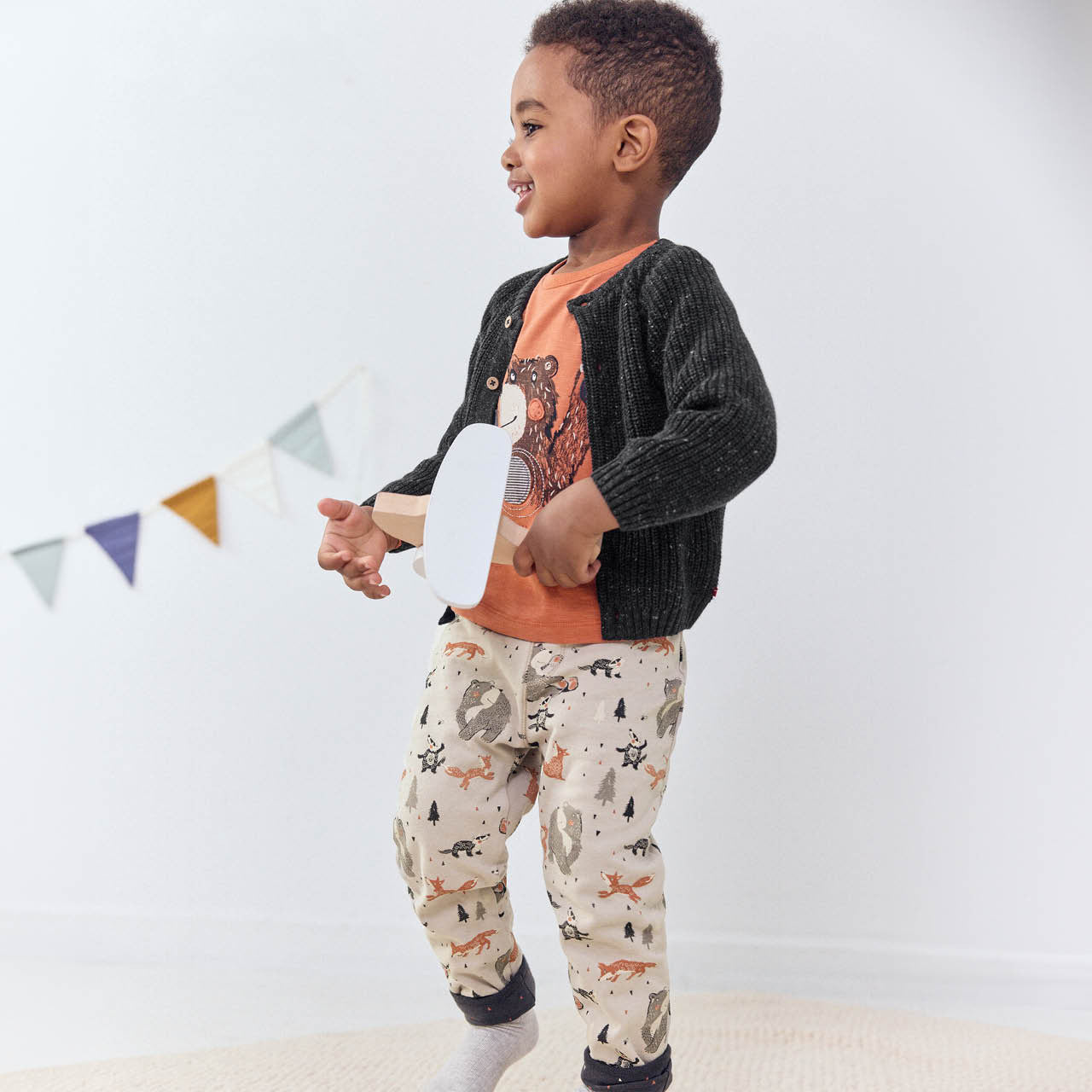 Woodland Animals | Beige - Anthracite | Kids Reversible Pants | GOTS Organic Cotton