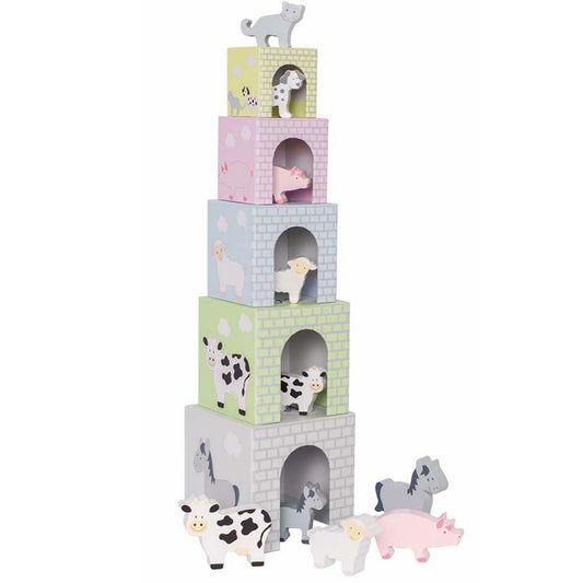 Stacking Cubes With 10 Farmyard Animals | Wooden Educational Toys