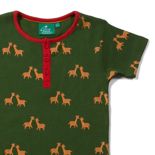 Giraffe Days | Short Sleeve Henley Baby Top | GOTS Organic Cotton