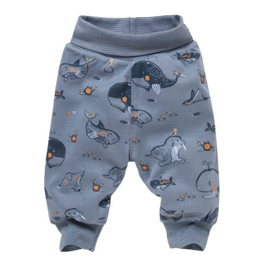 Sealife | White - Ocean Blue | Kids Reversible Waist Pants | GOTS Organic Cotton