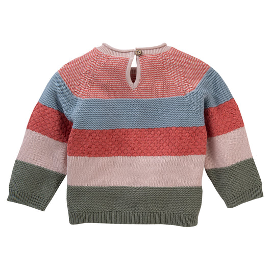 Blue, Raspberry, Rose & Sage Stripe | Baby Knitted Jumper | GOTS Organic Cotton