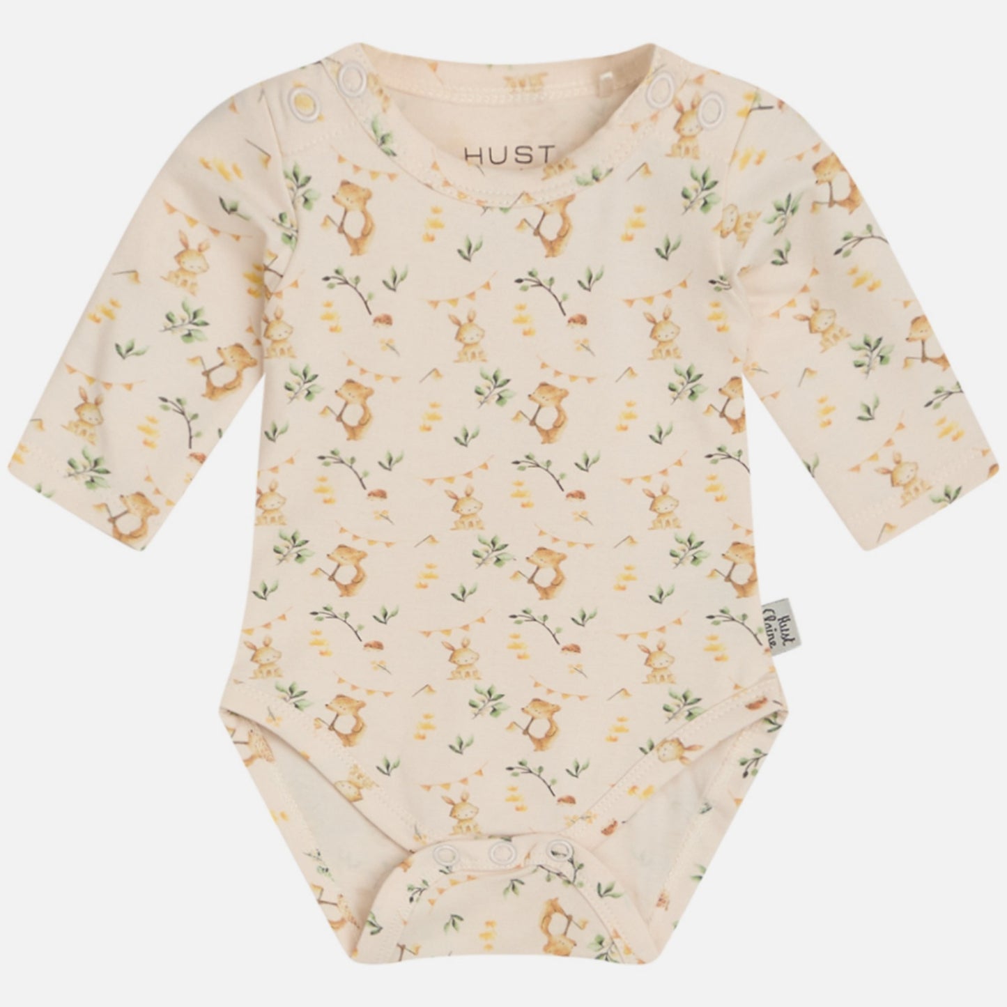 Let your little one explore and play in comfort. This gorgeous Hust & Claire long sleeve baby bodysuit with a super cute flower and animal print on a Scandi-inspired, soft pink base colour is made from extra soft GOTS-certified organic cotton and has poppers at the shoulder and between the legs that make getting dressed or nappy changing easy.
