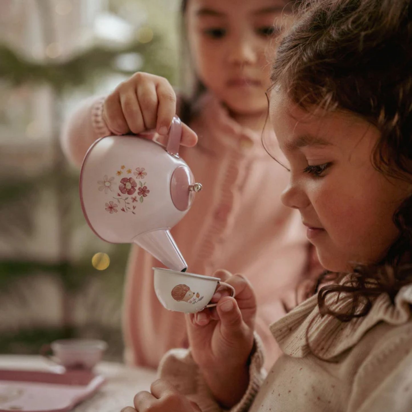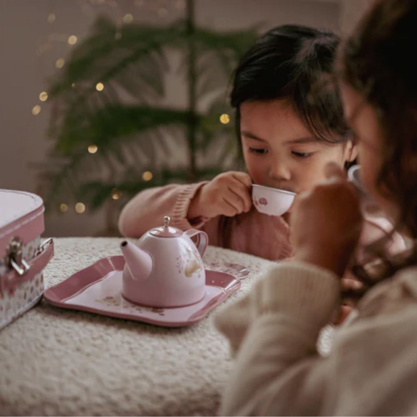 Looking for a tea set toy for a 3 year old that actually packs away neatly? This kids’ tea set in a carry suitcase is made for pretend play tea parties anywhere — at home, at granny’s, or brought along for a playdate — with a sweet little tray, teapot, two teacups and matching saucers all tucked into one illustrated case for quick tidy-ups. The metal pieces feel reassuringly sturdy, and because they’re wipe-clean, it’s the kind of role-play set you can say “yes” to more often, even when life’s a bit hectic. Some children will use it for big, chatty hosting (perfect for practising turn-taking, manners and storytelling), while others will enjoy quieter, careful pouring and setting out — great for building confidence and language in their own time. At BeoVERDE, we love how this keeps imaginative play beautifully simple, with everything stored together so it’s easy to bring out again and again.