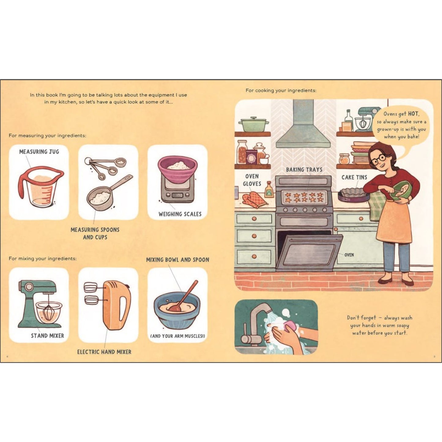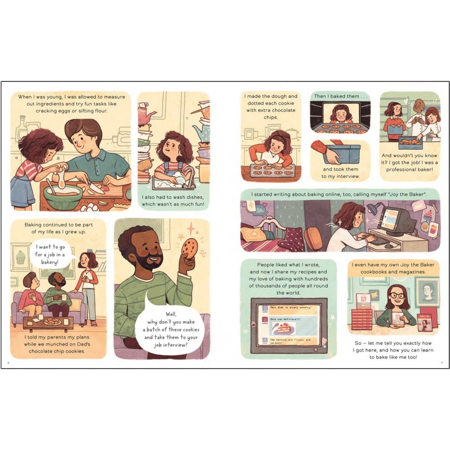 Uncover the magic of baking with Joy Wilson, beloved baker, social media star, and cookbook author, in this practical guide for budding bakers. Joy shares her love for baking, from watching her parents in the kitchen to bringing homemade chocolate chip cookies to her first job interview. She teaches key baking techniques like creaming butter and sugar, greasing pans, mixing, icing, and adding rainbow sprinkles, along with her insider tips and heartfelt advice for young bakers everywhere.