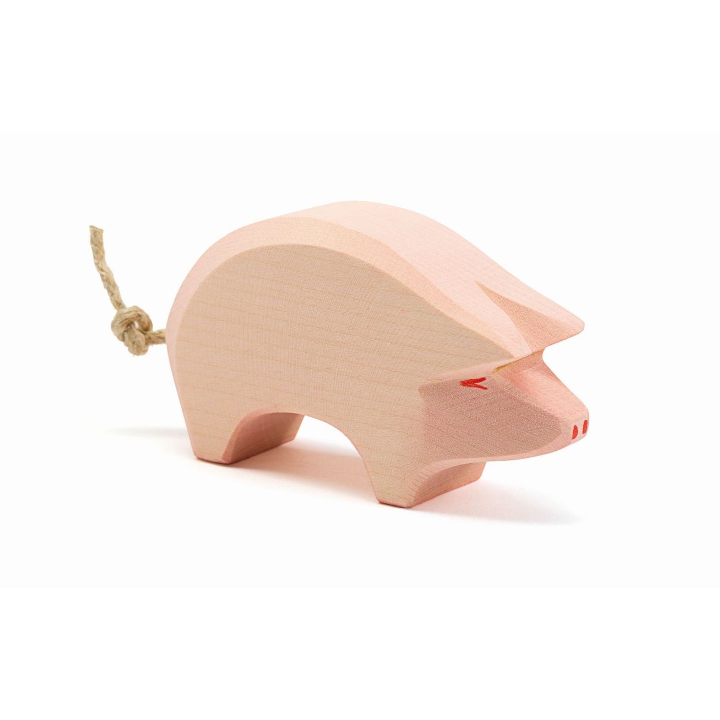 The Ostheimer Wooden Pig, Head Low, is a delightful addition to any toy farm, bringing charm and character to imaginative play. With her head pointed down, this lovely pink pig looks ready to sniff out something tasty on the ground or root around in the mud. Handcrafted with a smooth, arched back, squinting eyes, and a charming knotted tail, she’s full of personality and fun.
