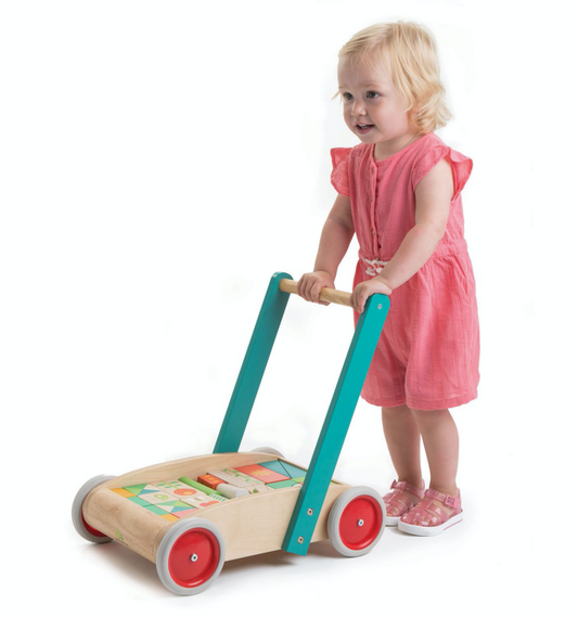 Baby Walker With Wooden Blocks | Wooden Push Along Trolley | Wooden Toddler Activity Toy
