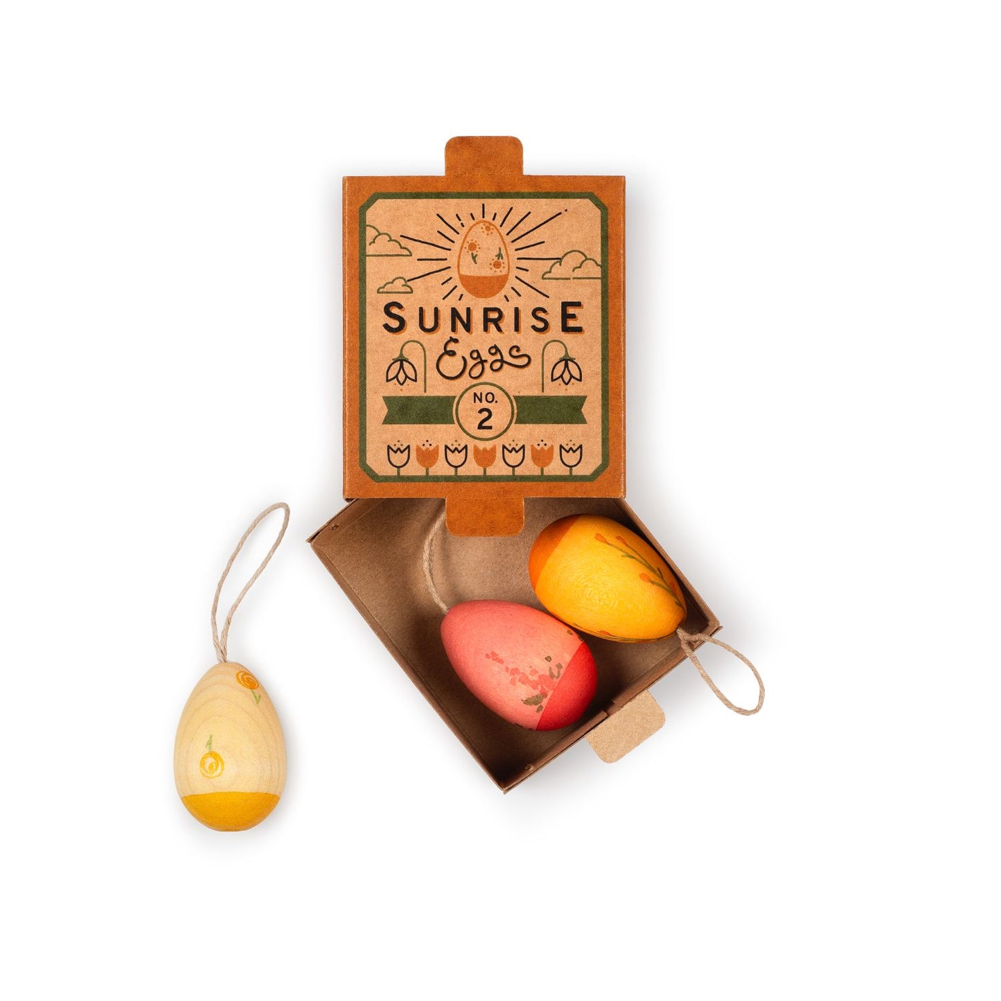 Add a warm and inviting touch to your Easter celebrations with the beautifully handcrafted Grapat Sunrise Eggs. This set of three wooden ornaments comes in soft, glowing tones—gentle shades of yellow, red, and orange—bringing the warmth of a spring sunrise into your home. Hand-painted with eco-friendly, water-based dyes, they allow the natural beauty of the wood grain to shine through—no plastic, just pure, sustainable loveliness.