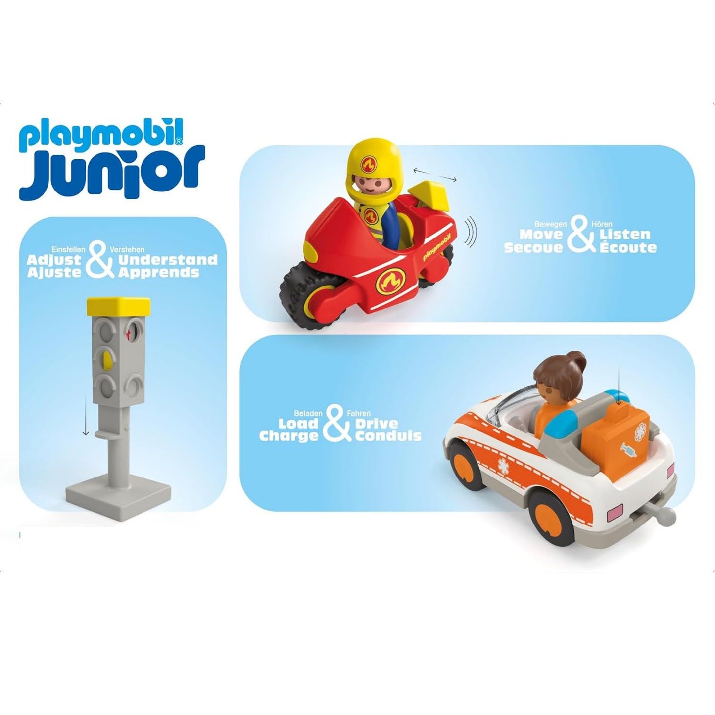 ►PLAYMOBIL JUNIOR - the perfect start for the youngest PLAYMOBIL fans! Specially designed for small hands and curious minds, PLAYMOBIL JUNIOR offers a range of exciting features such as stacking, puzzling, and sorting fun. Ideal for children aged 1-4 years, these toys help your little ones take their first steps into the big PLAYMOBIL world.