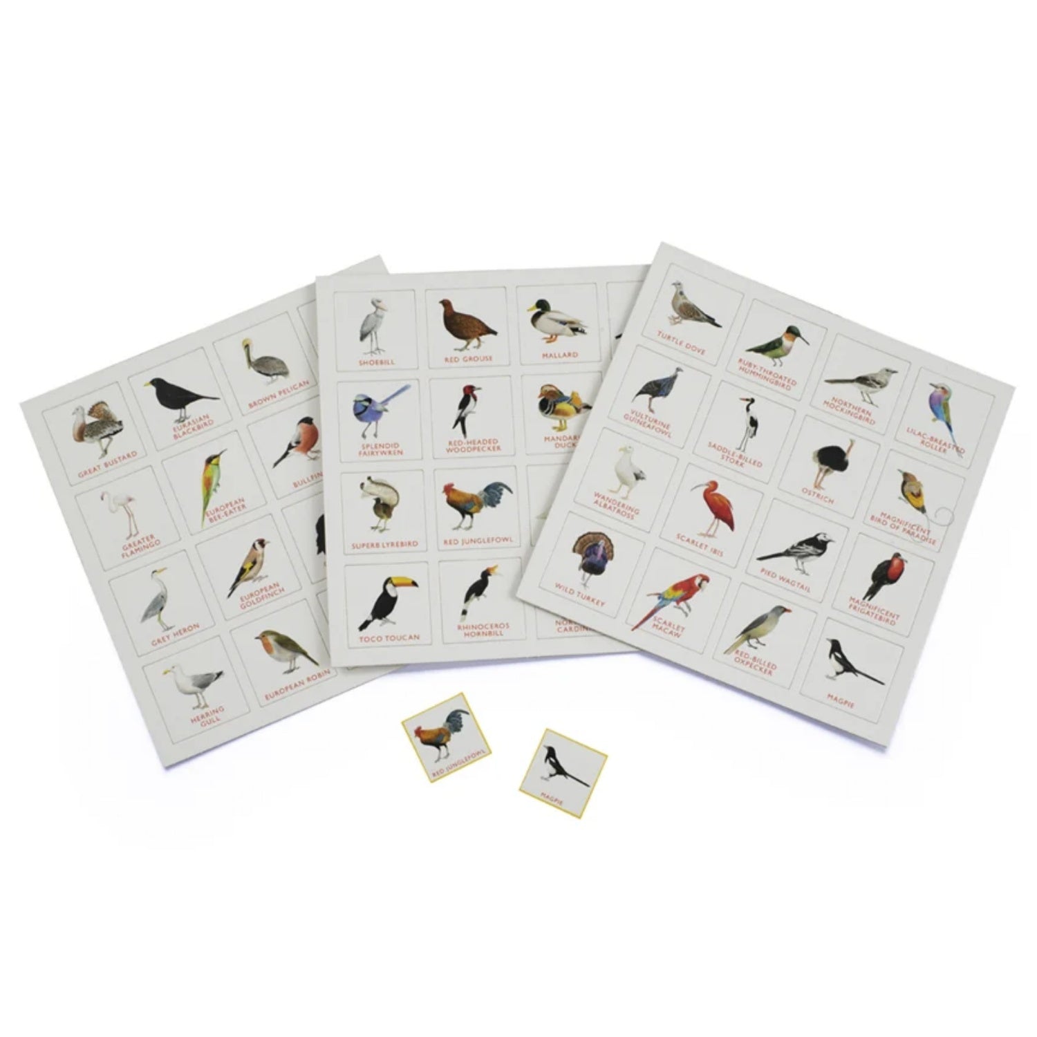 Play And Learn - this board game comes with a leaflet with interesting information and quirky facts for all the birds featured in the game. The set also includes 64 superbly illustrated bird tokens, one game board, 12 bingo cards, and brightly coloured counters for you to mark up your card.
