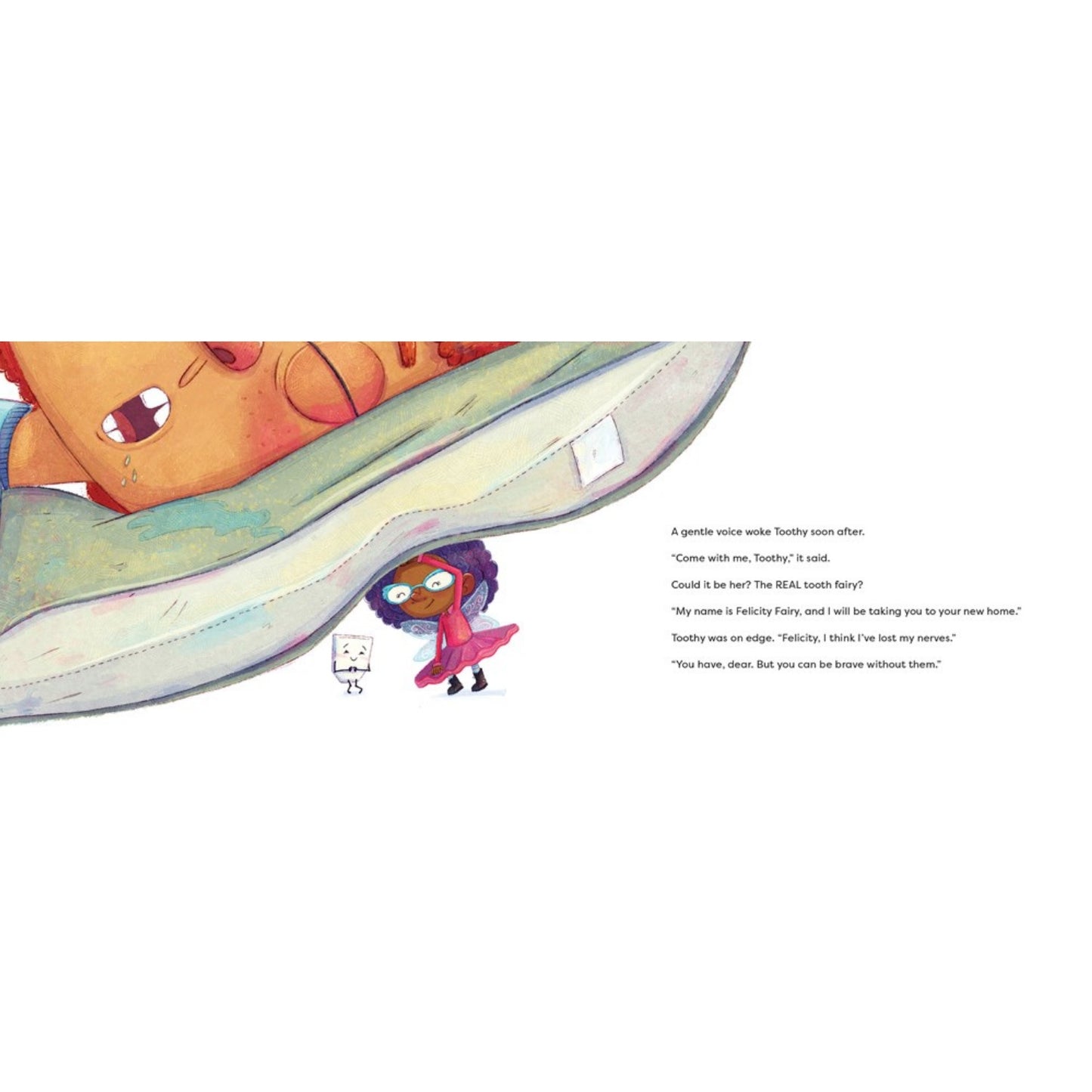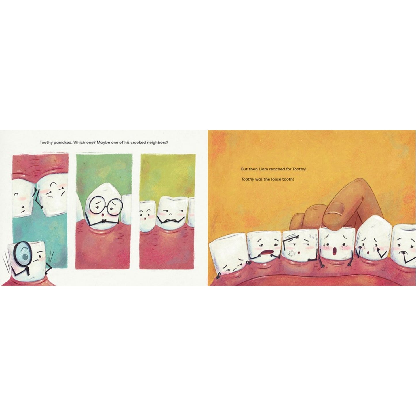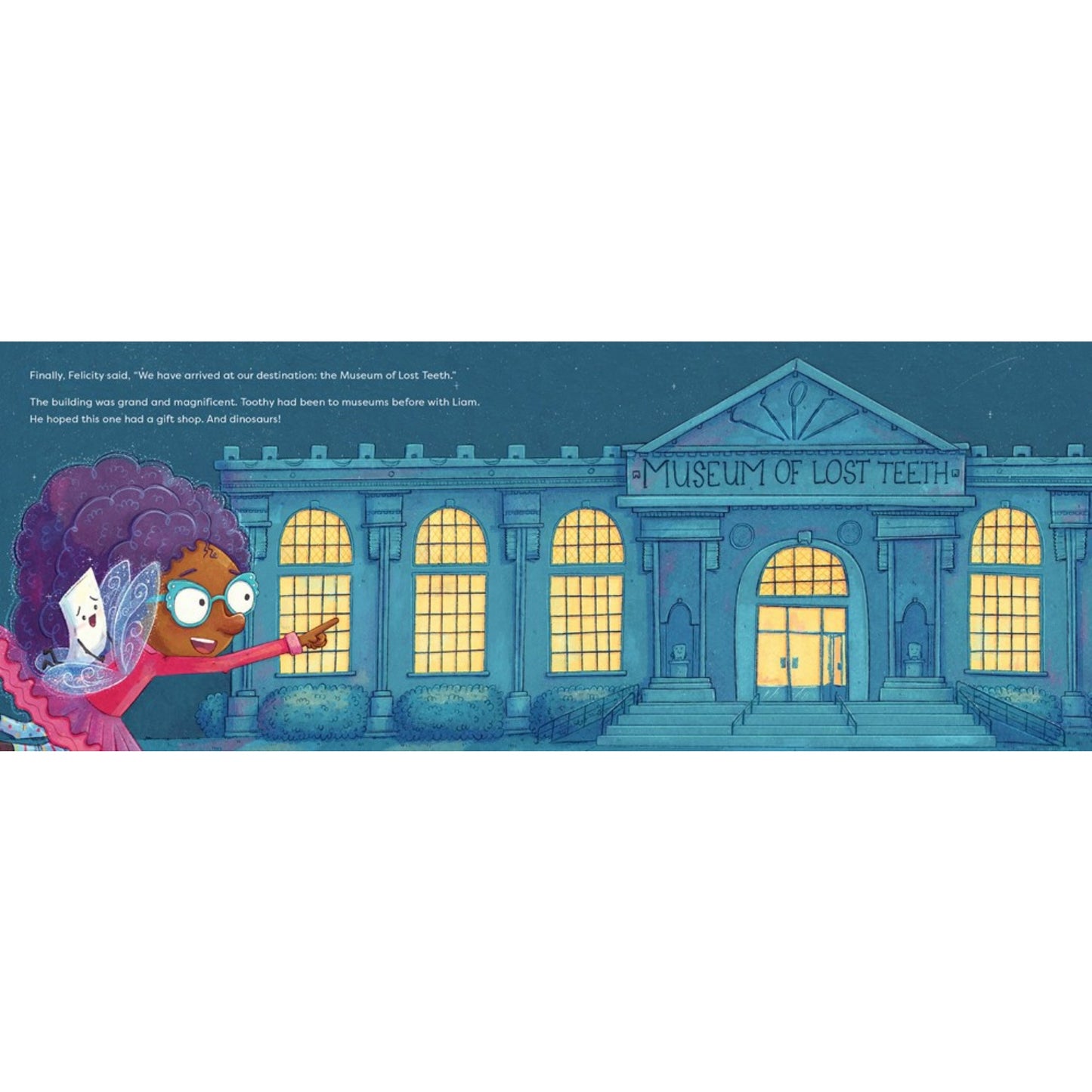 Find out where the tooth fairy takes all those lost teeth in this laugh-out-loud new picture book. Toothy lives in Liam's mouth next to his best friend Fang. He’s a good tooth—sparkly and strong, and he loves doing the floss. One day, Toothy notices that he is loose and panics! Where will he go after he leaves his comfy spot next to Fang? After a crunchy apple seals the deal, Toothy is tucked under Liam's pillow. When the Tooth Fairy appears, she takes Toothy to the Museum of Lost Teeth. It’s a more incredible place than Toothy could have ever imagined. It’s filled with new friends and fun activities like Tooth or Dare! Toothy finds a new home on the Firsts Floor, where first baby teeth are proudly displayed.