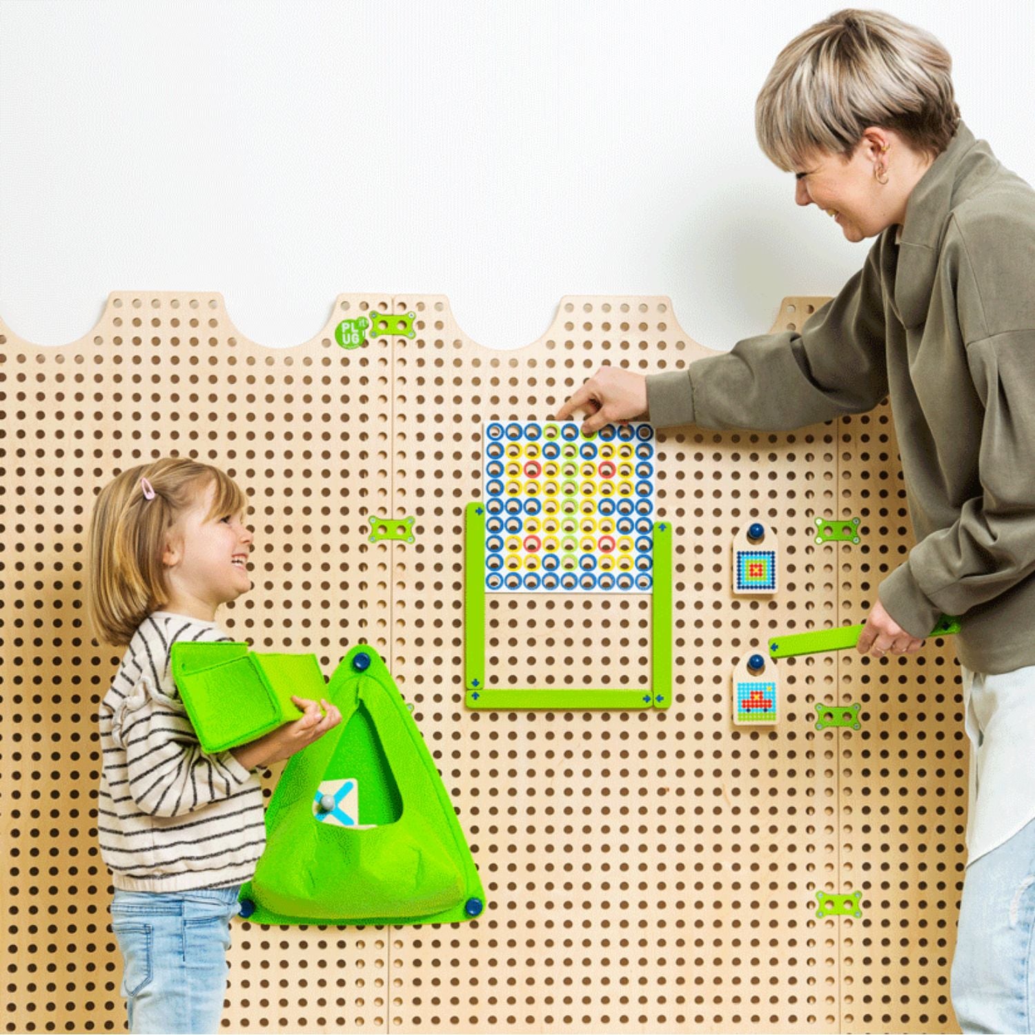 This expansion set adds two classic games to the beleduc PLUG-it wall system – traditional Tic Tac Toe and a modern coding/pattern-making activity. The beleduc PLUG-it Tic Tac Toe & Coding Set transforms your pegboard into interactive stations where familiar gameplay meets early STEM learning, all without screens or complex tech.