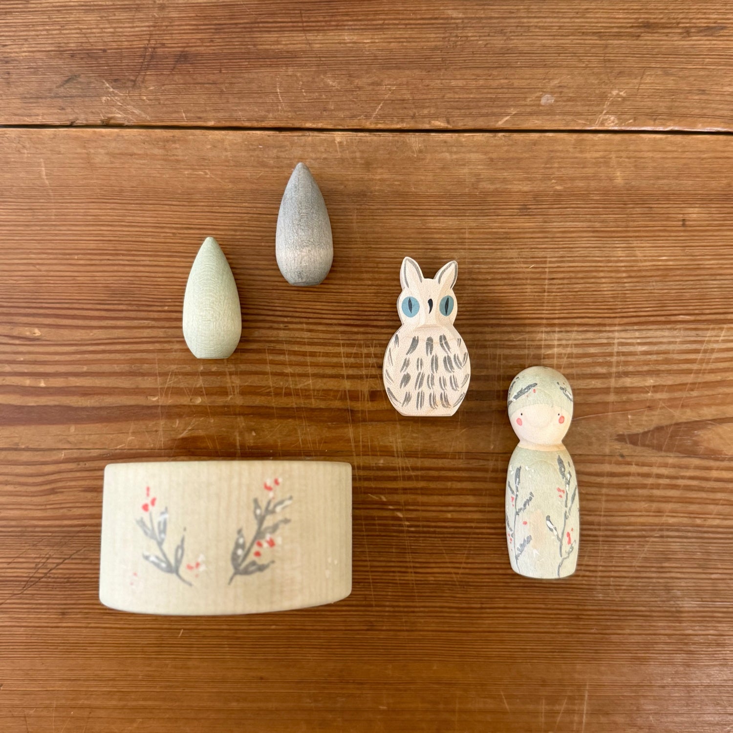 ►Details: 2x Snow drop mandala pieces, 1x Nin, 1x Bowl, 1x Snowy owl; hand-painted with non-toxic, water-based dyes to let the wood's natural beauty shine. Plastic-free and presented in a delightful cardboard box - perfect for gifting or storage.