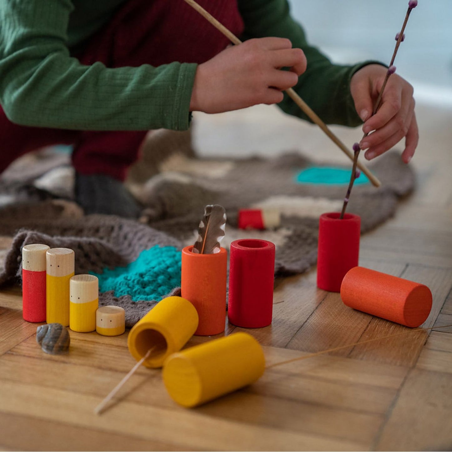 ►Details: 36 Wooden pieces, handcrafted from natural, sustainable wood and painted in classic rainbow colours with non-toxic, water-based stain: 6 big Lola, 6 mid Lola, 6 small Lola, 6 Tubes, 6 Solid Tubes and 6 half Tubes