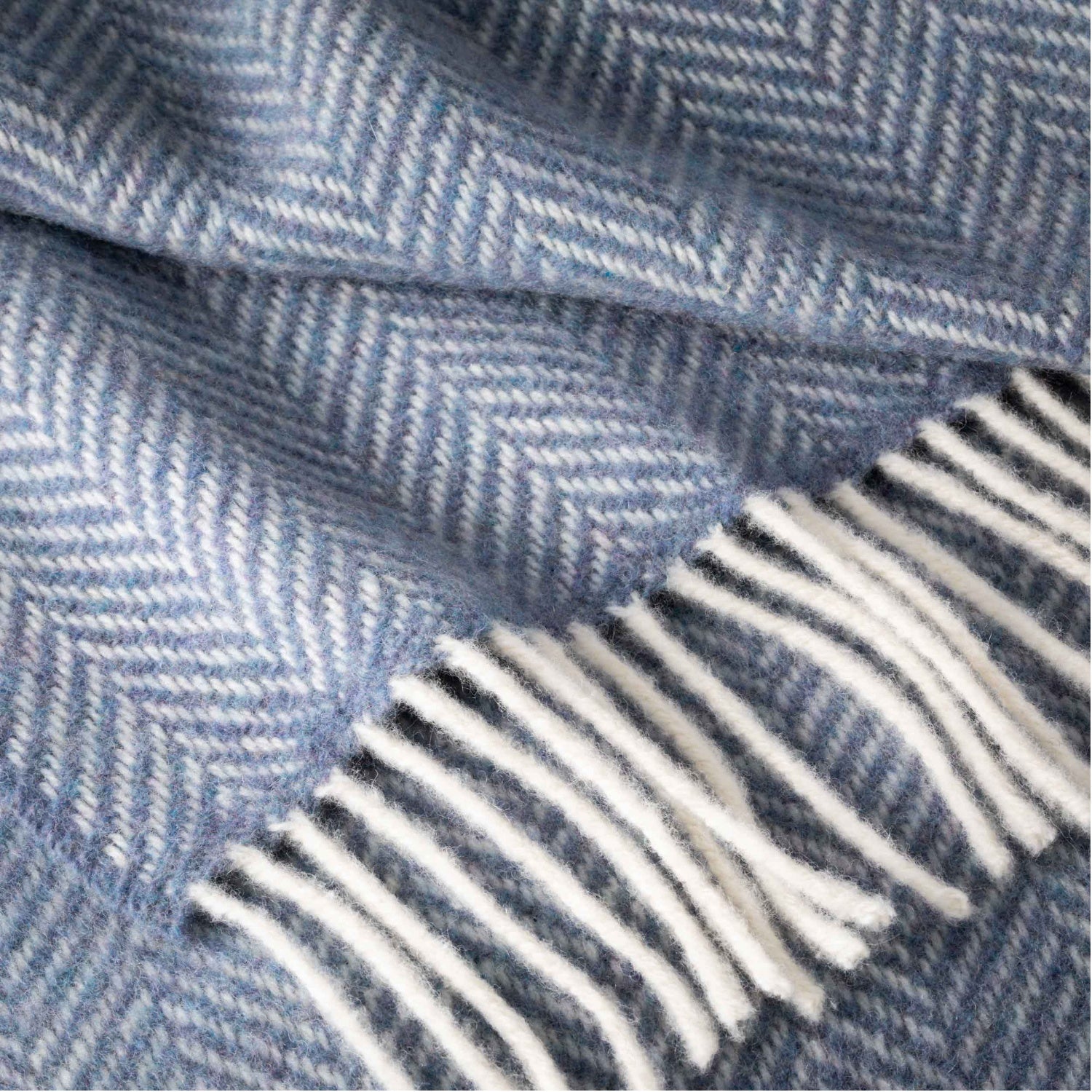 Denim Cream Herringbone Pattern | Cashmere Throw Blanket | Made in Nenagh, Co. Tipperary