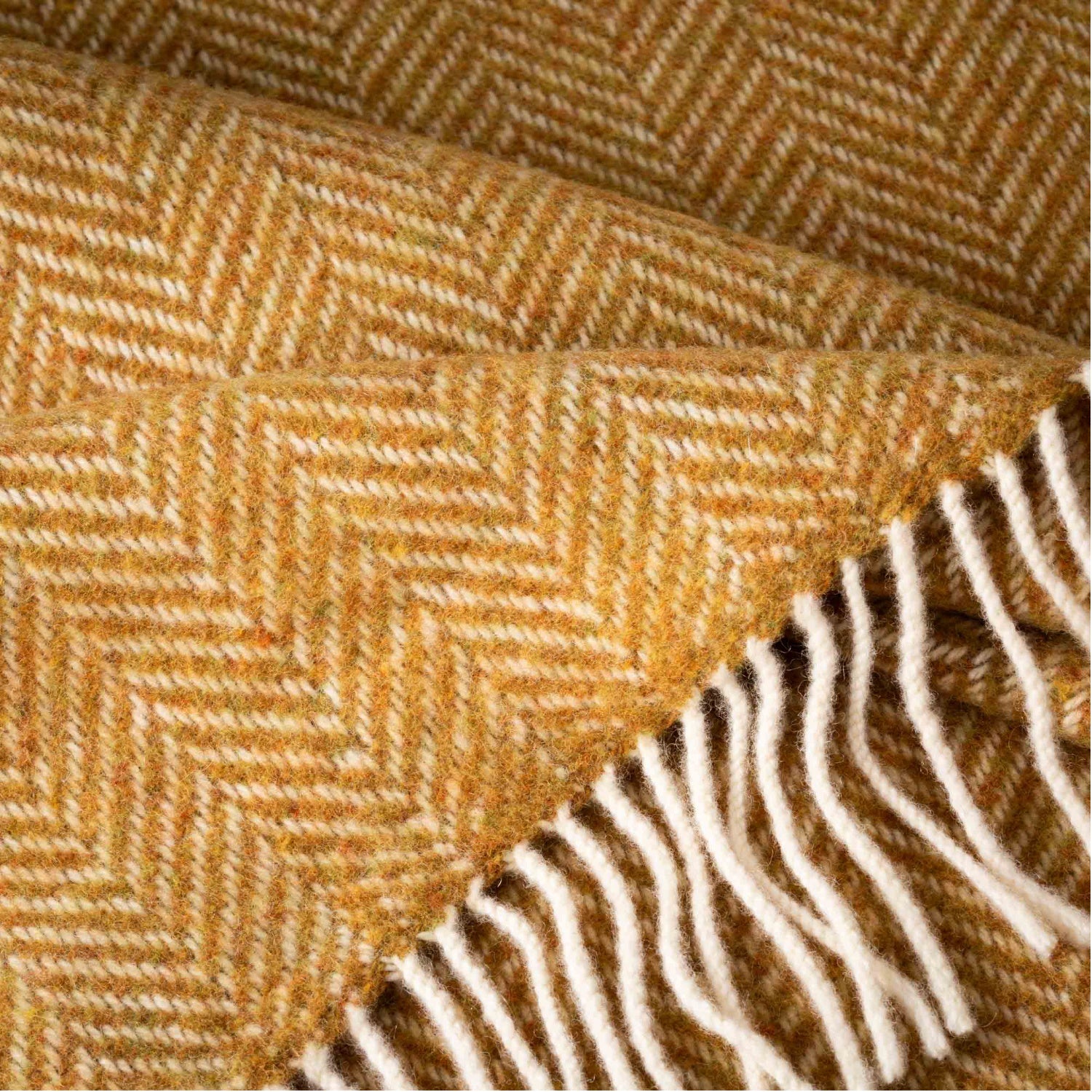 Mustard Mix Herringbone Pattern | Cashmere Throw Blanket | Made in Nenagh, Co. Tipperary