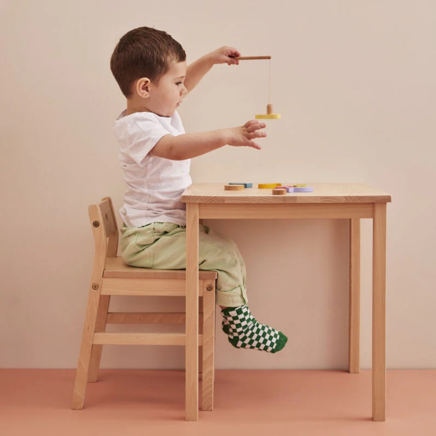 Looking for a wooden magnetic fishing game? This lovely Kids Concept fishing game is a brilliant tabletop activity for children from 2 years and older who like a bit of a challenge with their play. Made from FSC-certified wood, it comes with eight chunky wooden fish and a sturdy wooden rod, each with magnets hidden inside so the “bait” can hook the fish with a satisfying little click. Little ones can take turns with the rod, seeing who can catch the most, or play solo and focus on landing each fish one by one, which is great for building patience and concentration. Everything comes neatly packed in a giftable box with a ribbon, and inside you’ll find printed animal patterns where your child can practise placing the fish back into their “spots”, turning clean-up time into a matching and sorting game too. As they line up the rod, watch the fish and guide their hand, children are constantly practising hand–eye coordination, fine motor skills and early problem-solving – all while you chat about colours, animals and “who’s next in the boat?”, gently supporting language and social skills. It’s compact enough to pop on the table, bring to grandparents’ or keep ready for quiet time, yet engaging enough to be pulled out again and again as their skills grow. At BeoVERDE, we love how this turns a simple idea into rich, screen-free play that supports focus, control and shared fun in such a beautifully made wooden set.