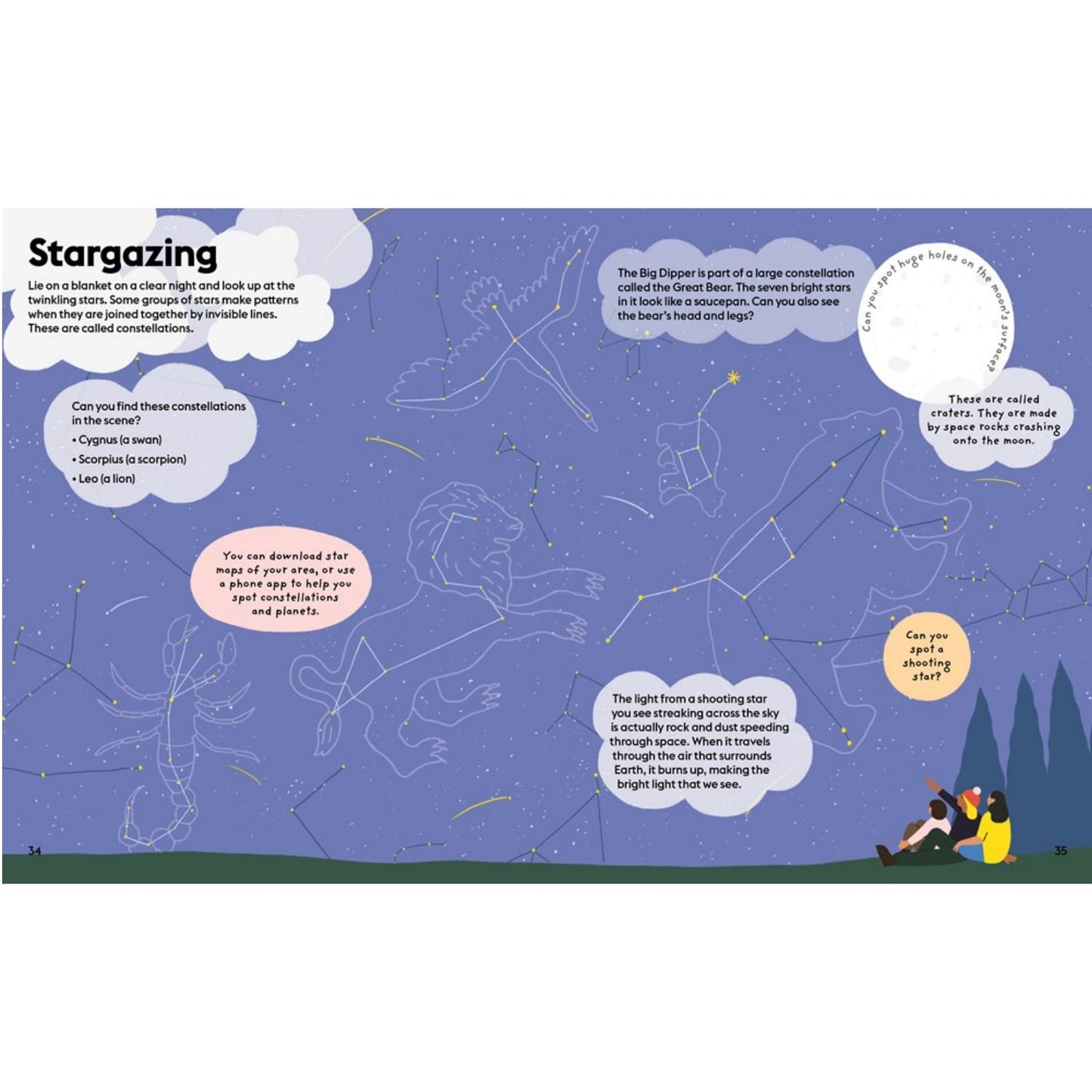 A book that encourages children to go and play outside and discover what nature has to offer. Leave the house and roam into the nature: It is a fascinating place, waiting to be conquered by little ones with curious minds. Whether in the garden, park, or a nearby forest, a closer look at nature will draw out budding architects, their first constructions built from stones, branches, and leaves; a thorough investigation of trees will reveal all kinds of insects; and listening to the animals around will teach their sounds. Let's Play Outdoors! is for a new generation of environmentally conscious children, showing them how to interact with their surroundings in a meaningful way. The activities suggested inspire independent learning about animals, plants, and the weather, as well as how to look after the world.