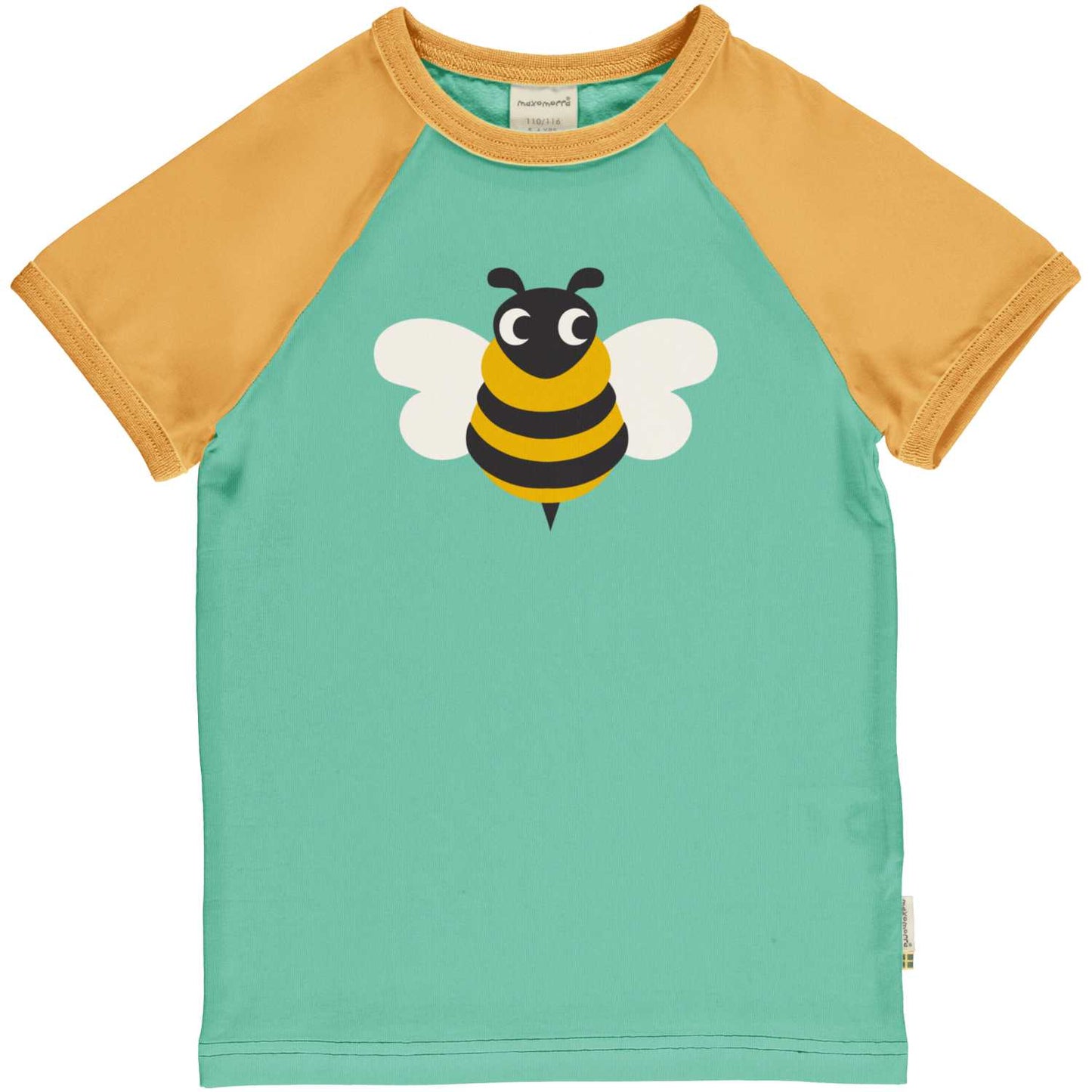 This Maxomorra Bee Short Sleeve Raglan Top made from soft organic cotton jersey, has a bold bee single print and contrasting trim.