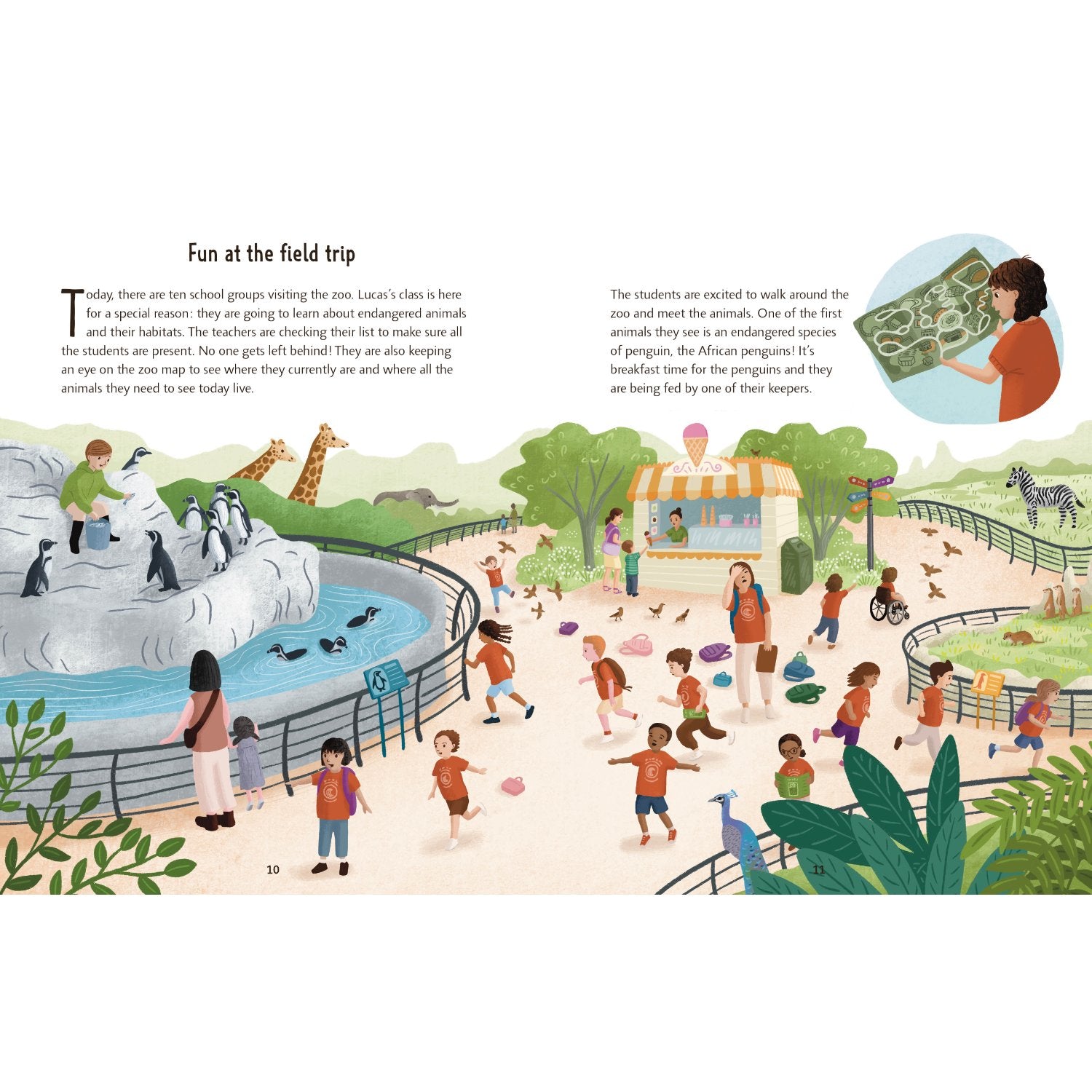 Follow the story of several characters during a busy day – including zookeepers, a school trip, and some very mischievous animals! Along the way you will discover how the creatures are fed and kept entertained, as well as what goes on once the zoo shuts for the day!
