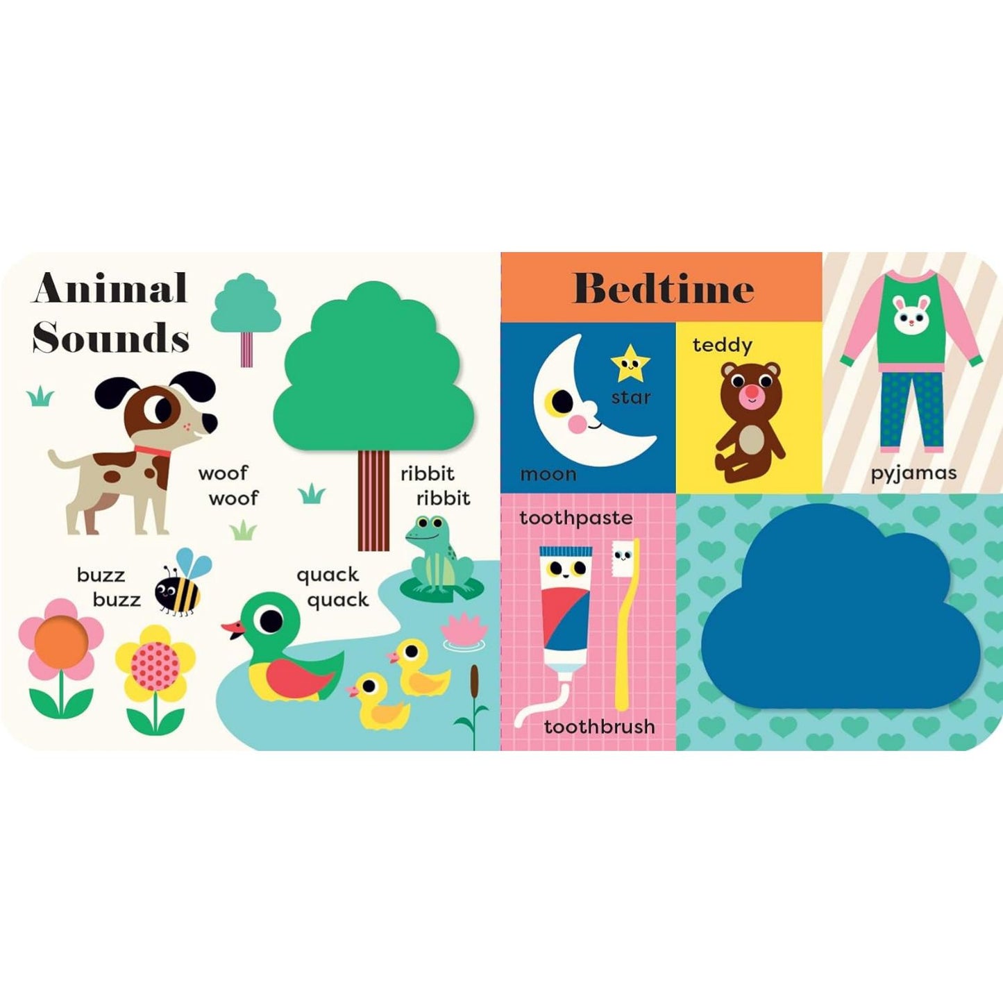 A brilliant large-format board book introducing early-learning first concepts and encouraging interactive play, with 10 soft felt flaps, tactile die-cuts on every page and a surprise mirror ending.