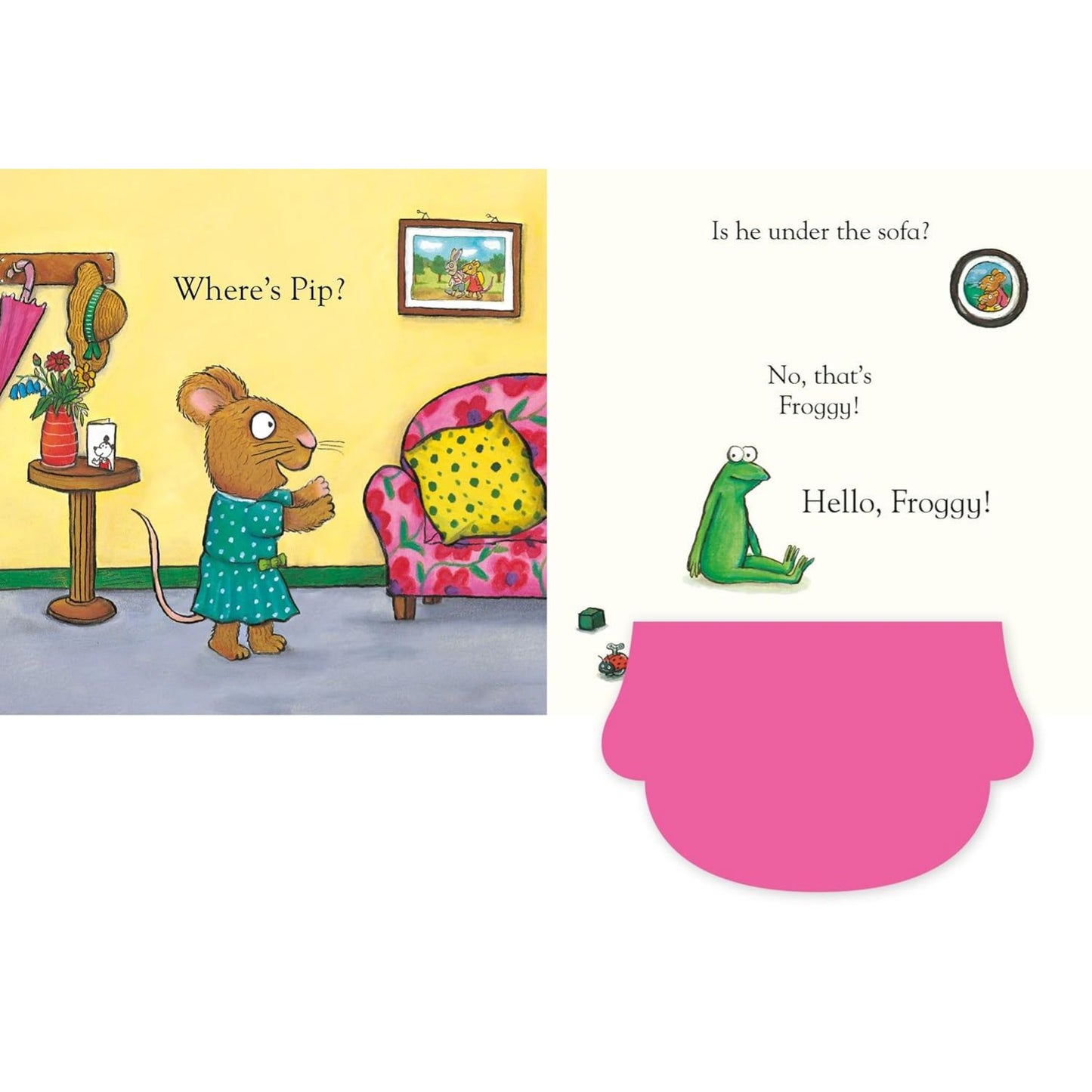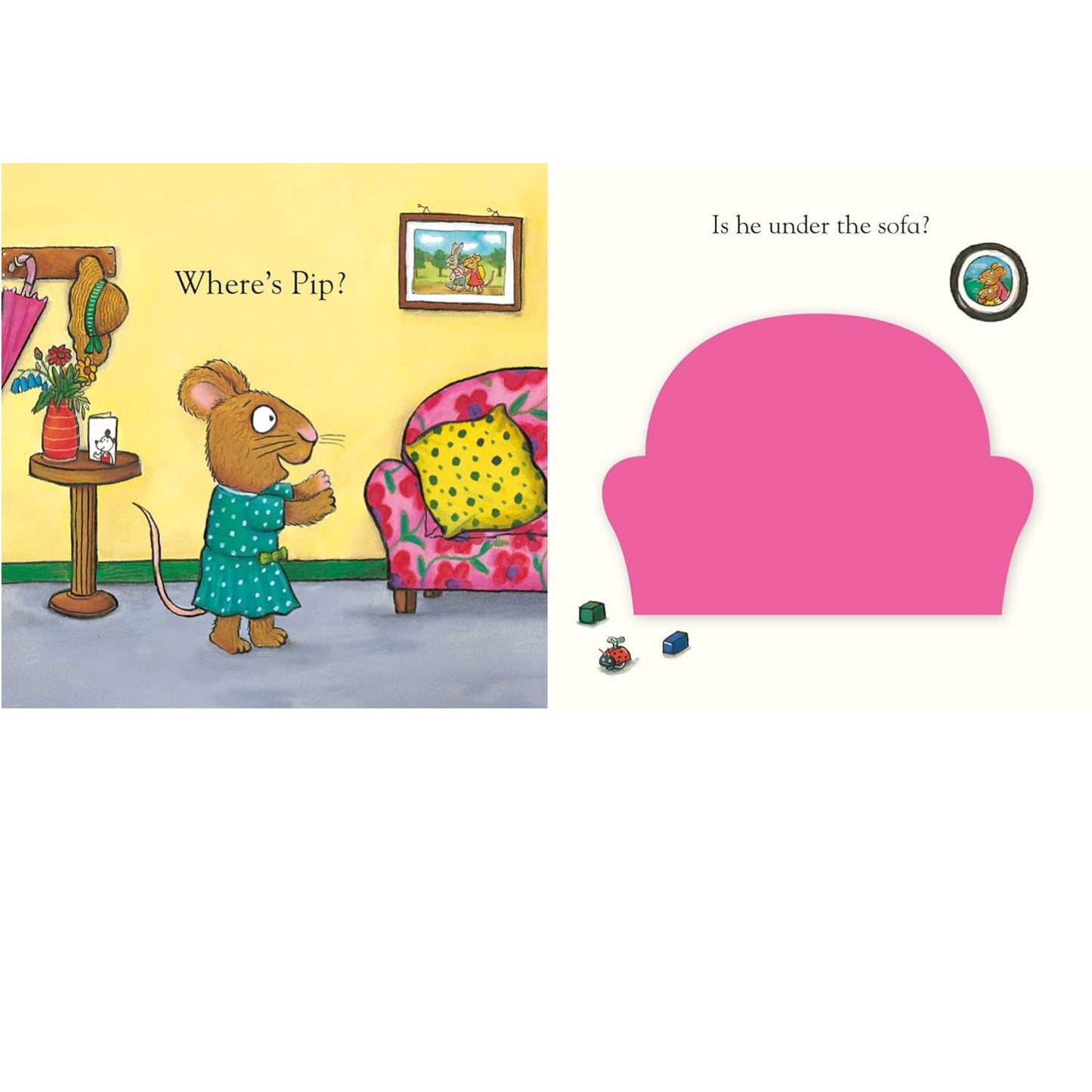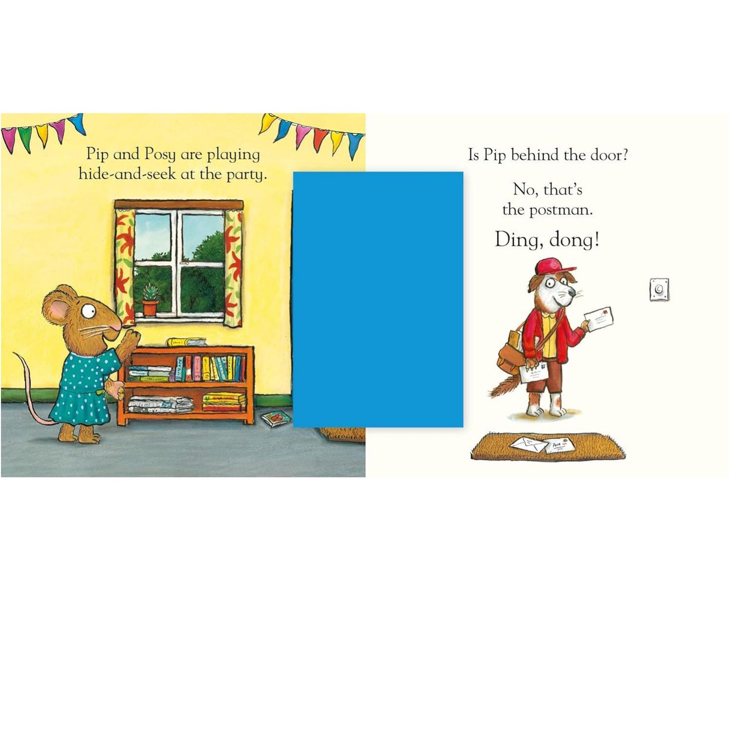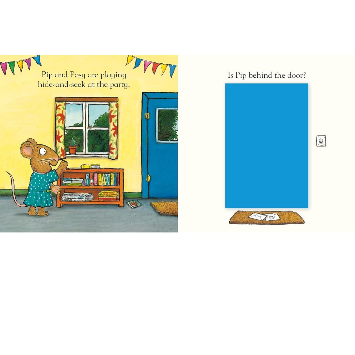 Pip and Posy are playing hide-and-seek at the party, but Posy can’t find Pip anywhere. Can you help her find her friend?