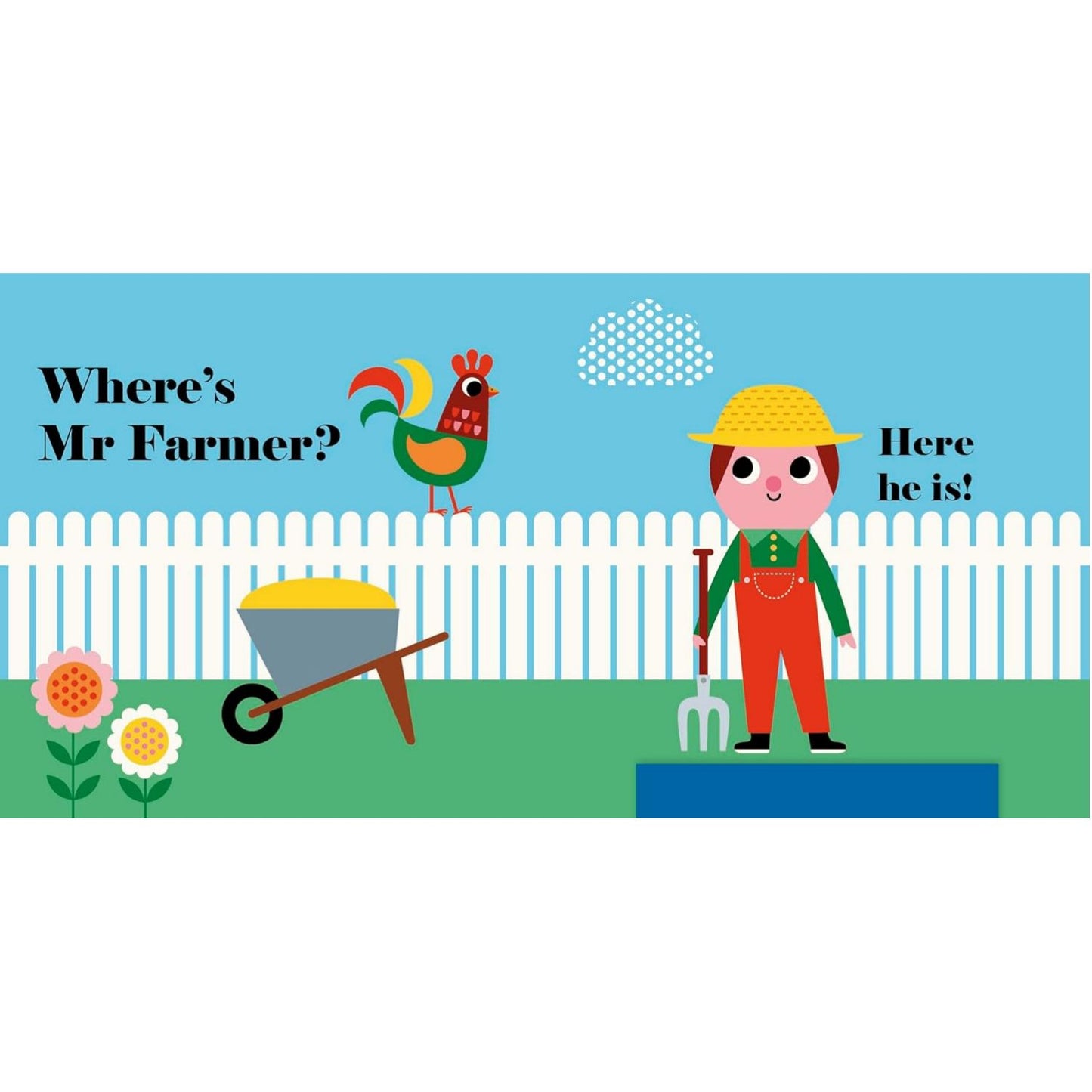 In Where’s Mr Tractor?, you’re on the look out for Mr Farmer, Mrs Combine Harvester, Mrs Sheepdog and Mr Tractor himself!