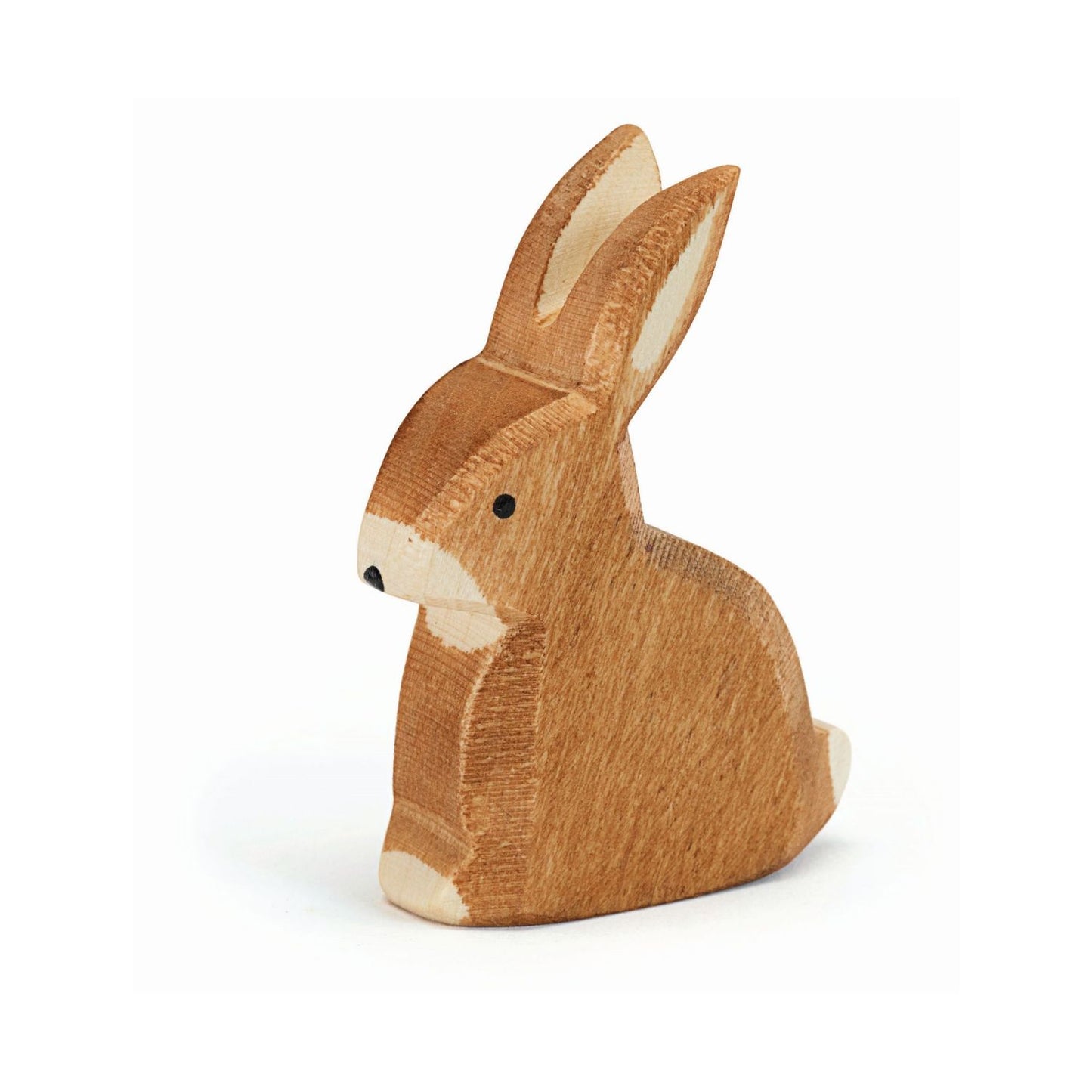 Lovingly handcrafted from sustainable wood, the natural grain peeks through the non-toxic brown paint, giving its fur a soft, strokable appearance. Its rounded paws and gentle pose make it the perfect companion for small-world play, ready to nibble on some clover or curl up in its burrow.