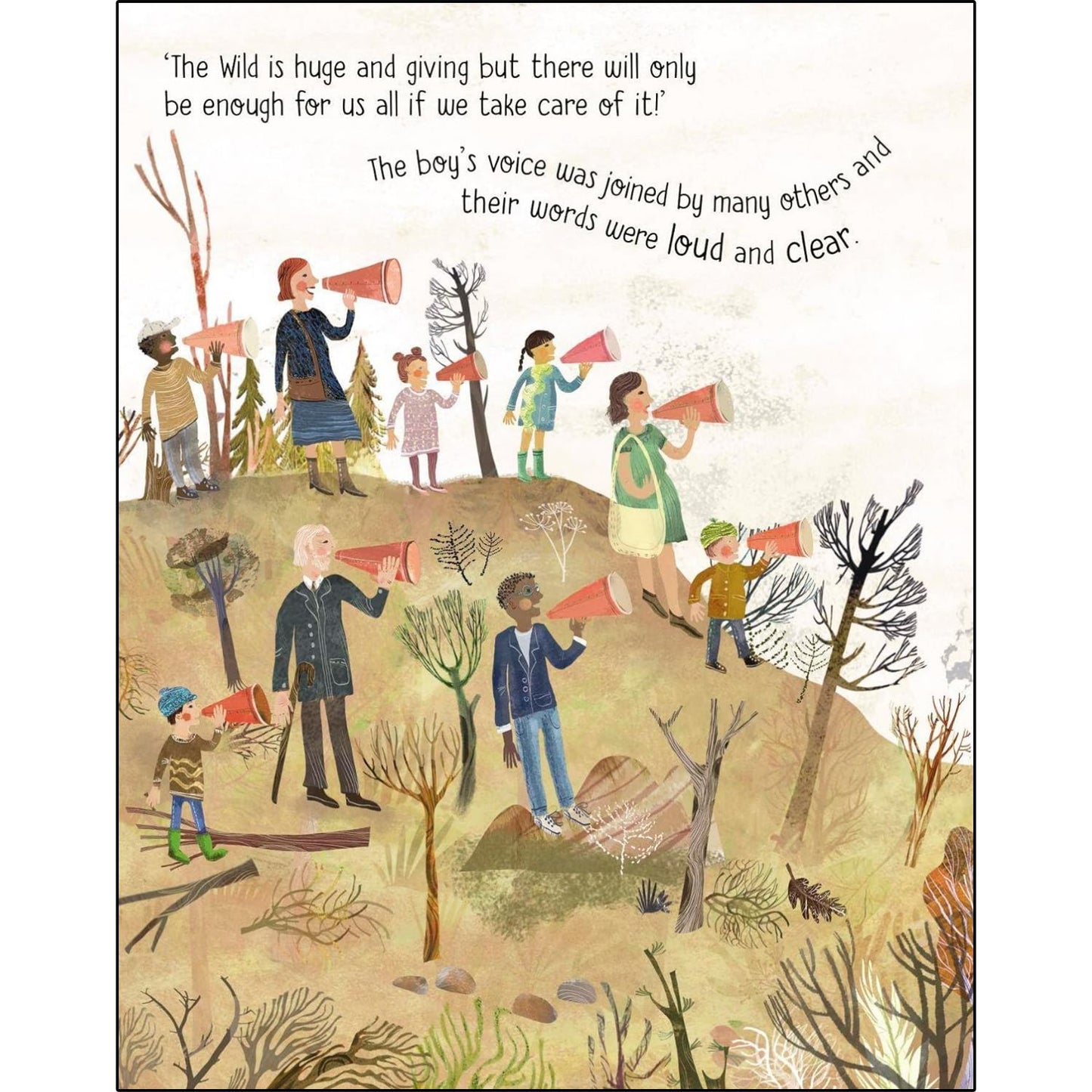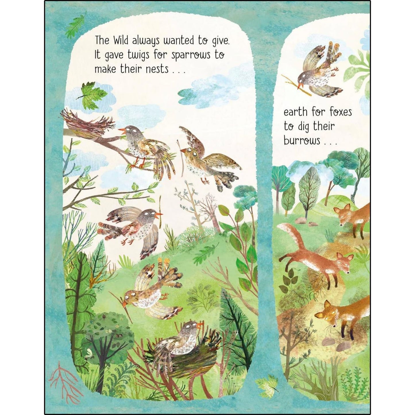 Once upon a time, somewhere not far away, was the Wild. The Wild was huge and giving, and everything from insects, to birds, to humans made their home in it. At first, people lived lightly and took what they needed, but when they started to take more, the Wild suffered. For the Wild to be healthy, someone must be brave enough to raise their voice . . .