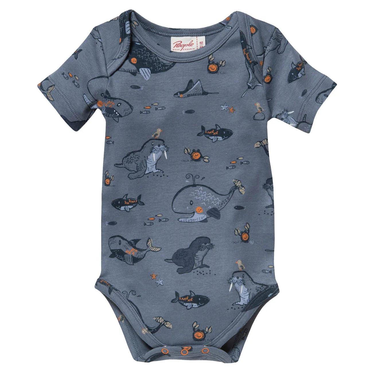 This People WEAR ORGANIC Sealife Short Sleeve Body is a super soft organic cotton bodysuit for babies and toddlers with an envelope neck for easy undressing, a cute sealife design and nickel-free, stainless-steel poppers between the legs for nappy changing time. Cut to fit cloth nappies as well.