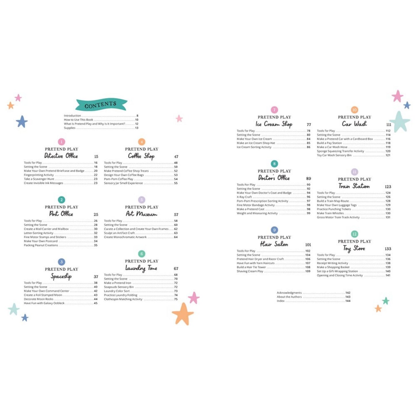 Within each chapter, find ideas for how to set the scene, instructions for crafting props, and activities that you can set up for your child. You’ll also discover time-saving tips, ways to extend the play, how to adapt activities for different age groups, and how engaging in the play and activities benefits your child.