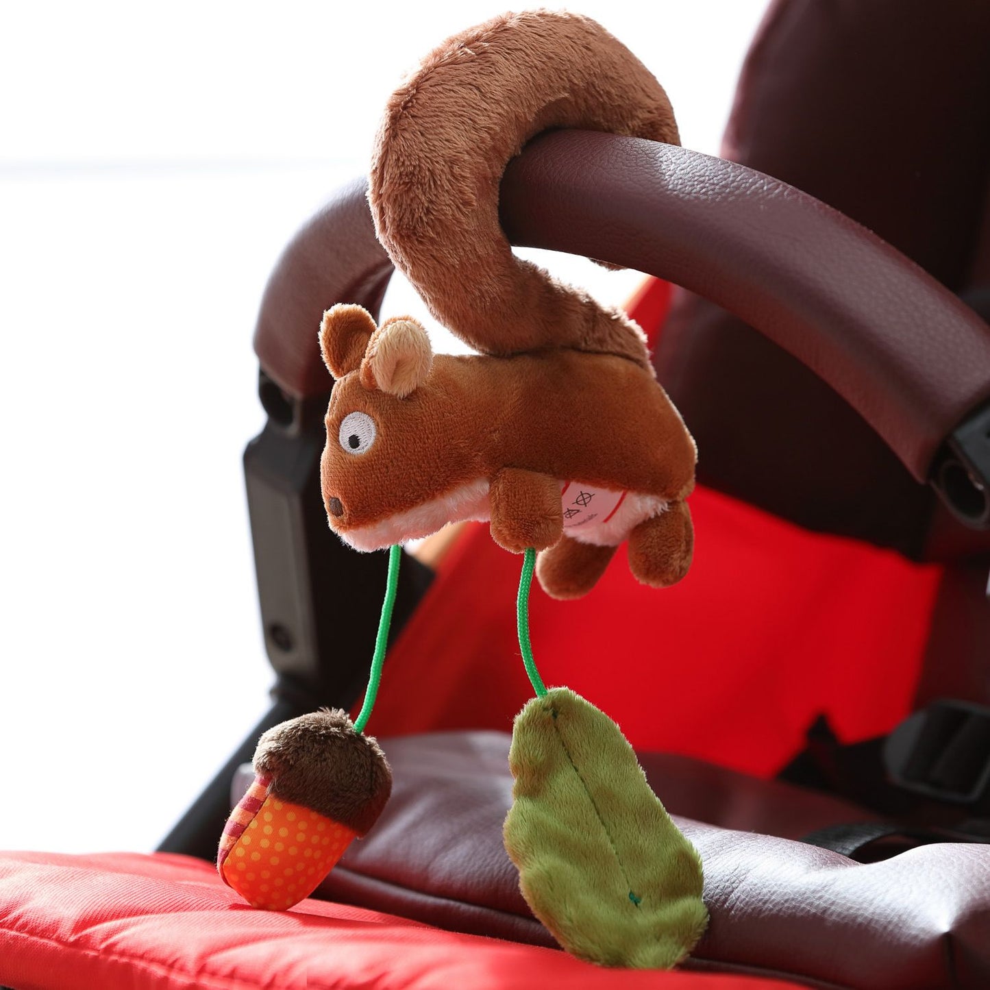 The Sigikid Squirrel Pram Toy is the perfect companion to keep your little one entertained on the go! This cheerful squirrel, with its fluffy tail, easily attaches to the bar of a pram, baby car seat, or cot, keeping baby company wherever they travel. The friendly squirrel gazes down lovingly, ready to captivate curious eyes and busy hands.