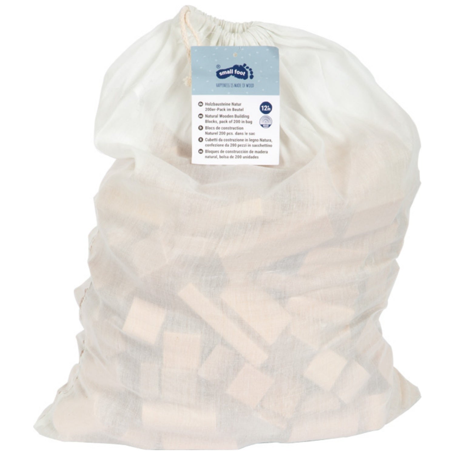 Natural Wooden Building Blocks In A Bag | 200 Classic Wooden Blocks | Develops Fine-Motor Skills