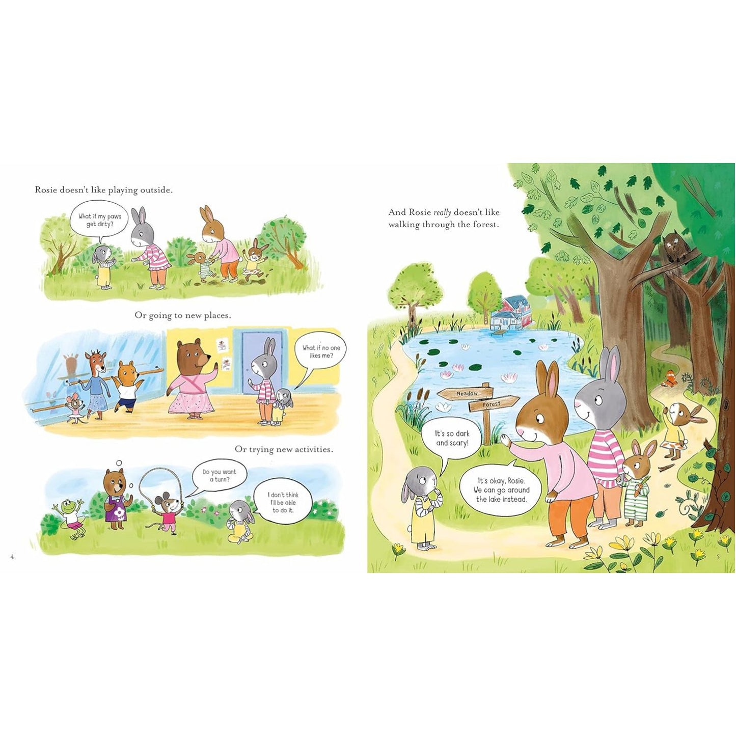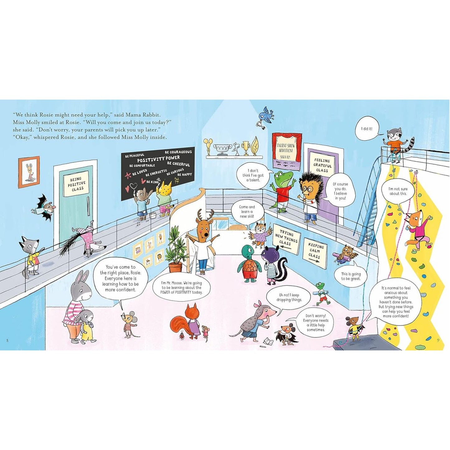 Rosie Rabbit is shy and scared of many things. So when she and her family come across Miss Molly's School of Confidence, Miss Molly welcomes her in. Here Rosie learns how to build her confidence, make friends and even teach Papa Rabbit a thing or two about overcoming your fears. A perfect way to start conversations with children about resilience and confidence issues, with humour, a gentle story, and a cast of lively animal characters.